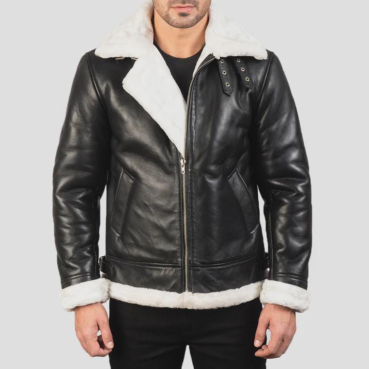 Handcrafted from premium genuine leather (or faux leather option available) with a plush real shearling fur lining, this jacket offers unbeatable warmth and durability. The contrast of black leather and white shearling adds a bold, vintage appeal that never goes out of style.