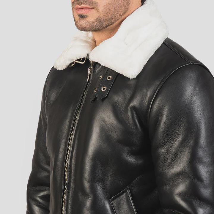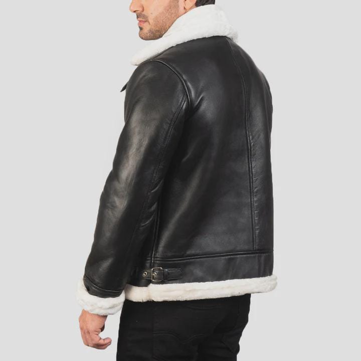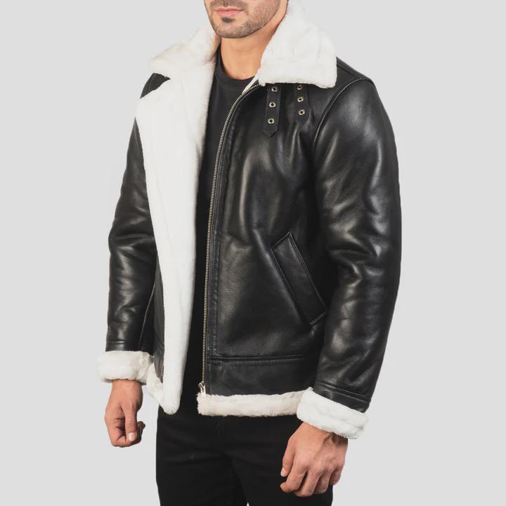 Stay warm in style with this classic B-3 Black & White Shearling Leather Bomber Jacket, inspired by timeless aviation fashion. This rugged yet stylish aviator coat is perfect for chilly days, road trips, or adding a bold touch to your winter wardrobe.