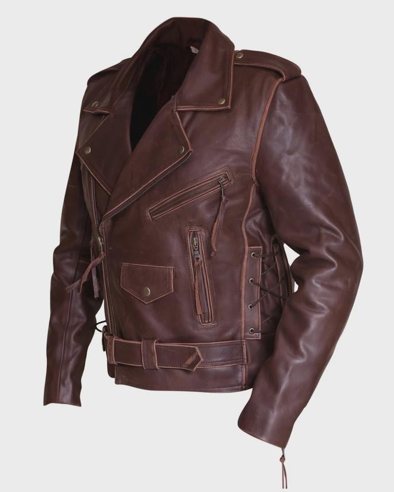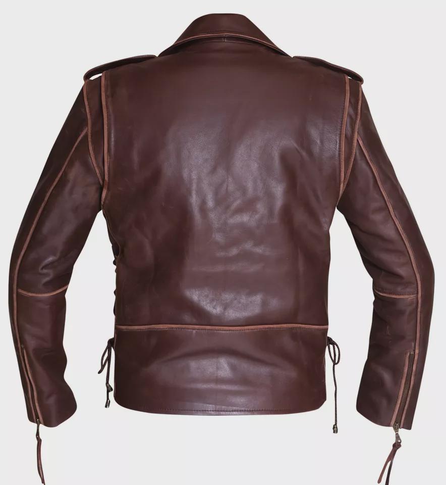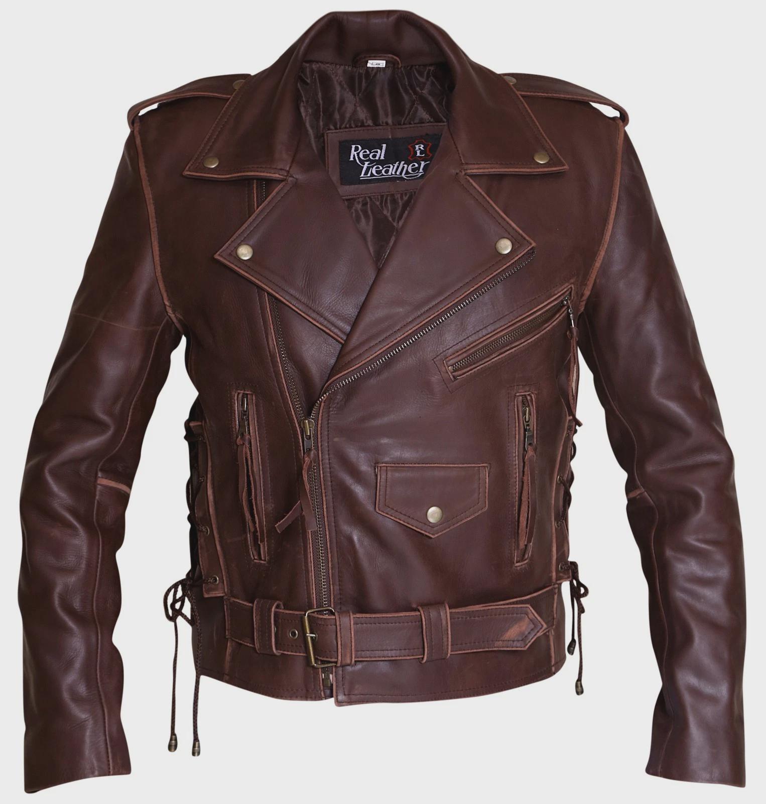 Men's Retro Vintage Distressed Brown Marlon Brando Motorcycle Biker Real Leather Rider Jacket