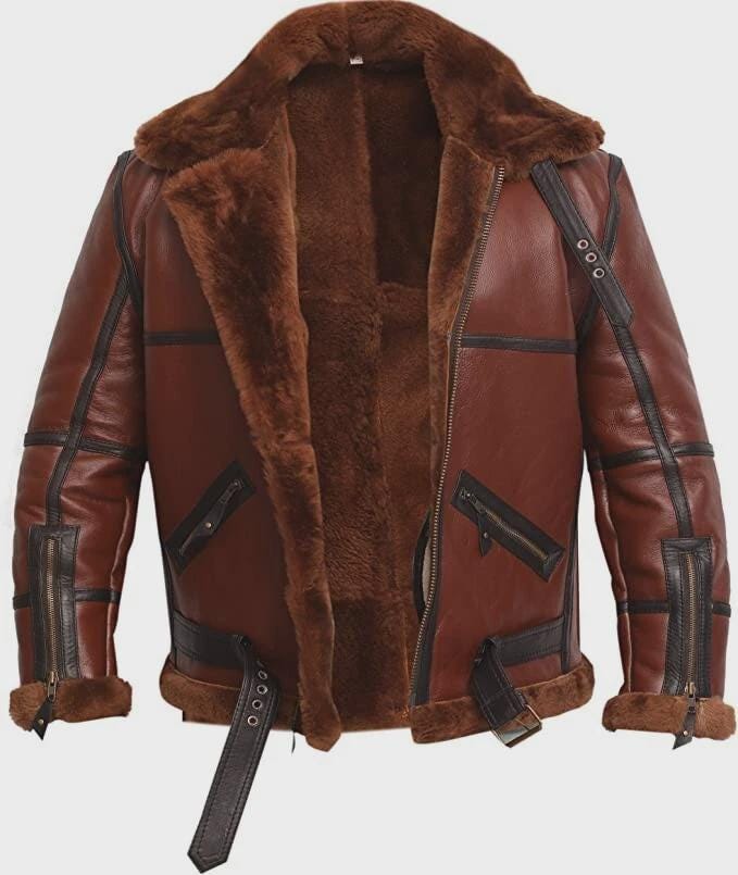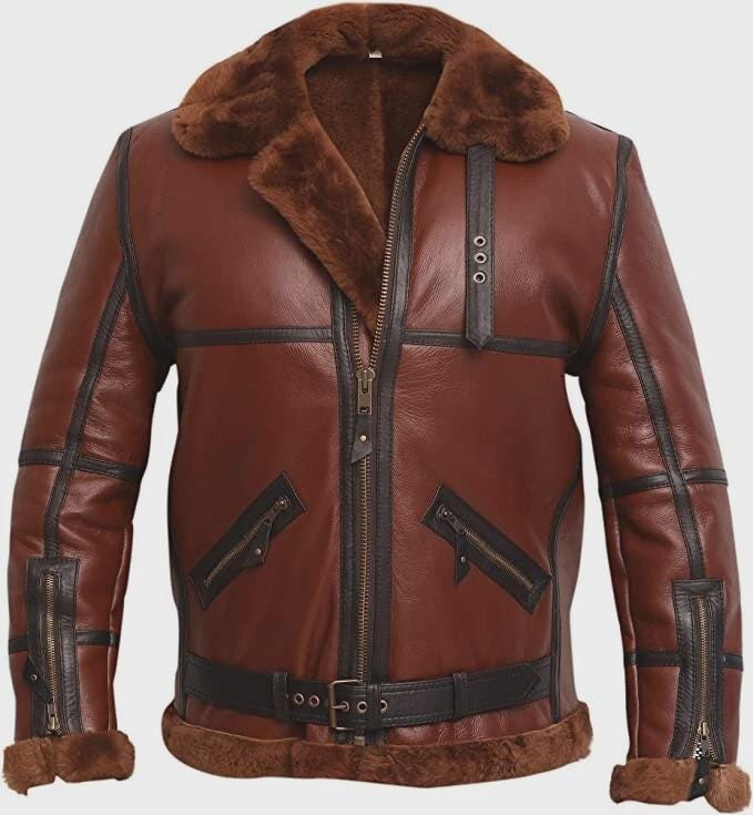 Men's RAF B3 Brown Real Shearling Bomber Real Sheepskin Leather Jacket