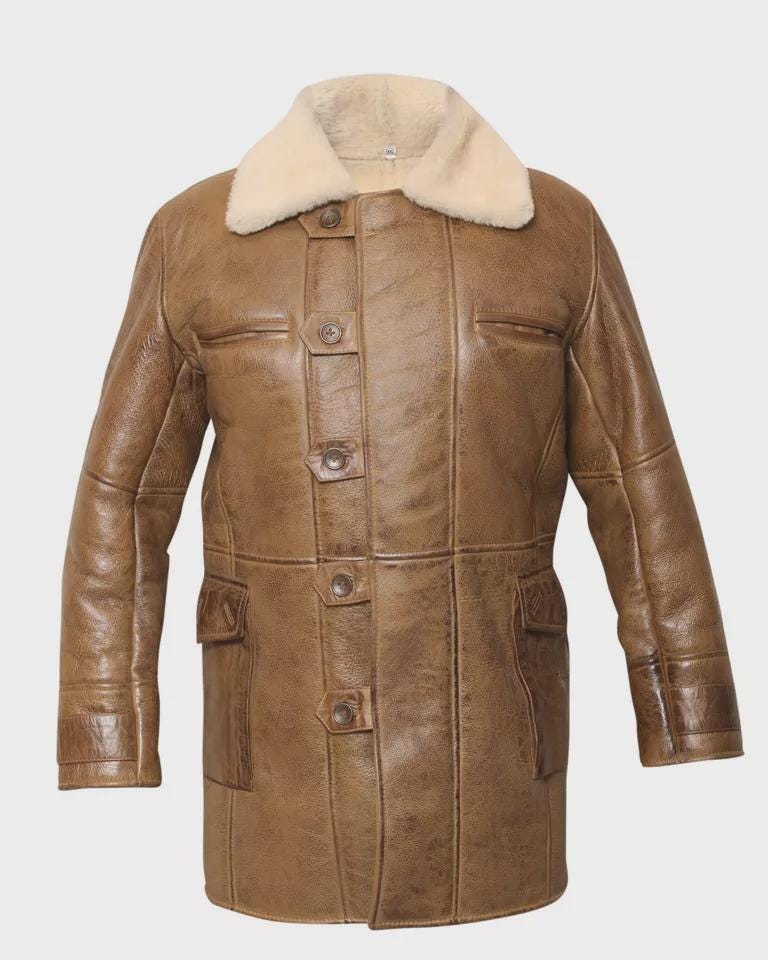 Tom Hardy Bane The Dark Knight Rises Real Shearling Real Sheepskin Leather Coat Jacket
