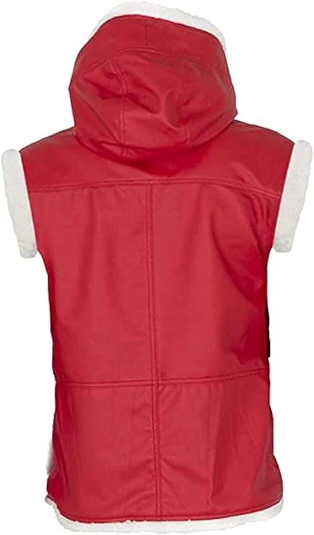Christmas Red Faux Fur Hooded Vest with Belt – Warm Winter Gift